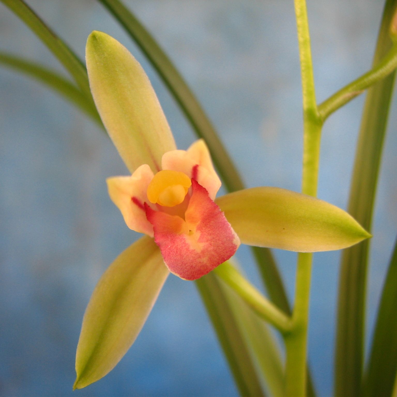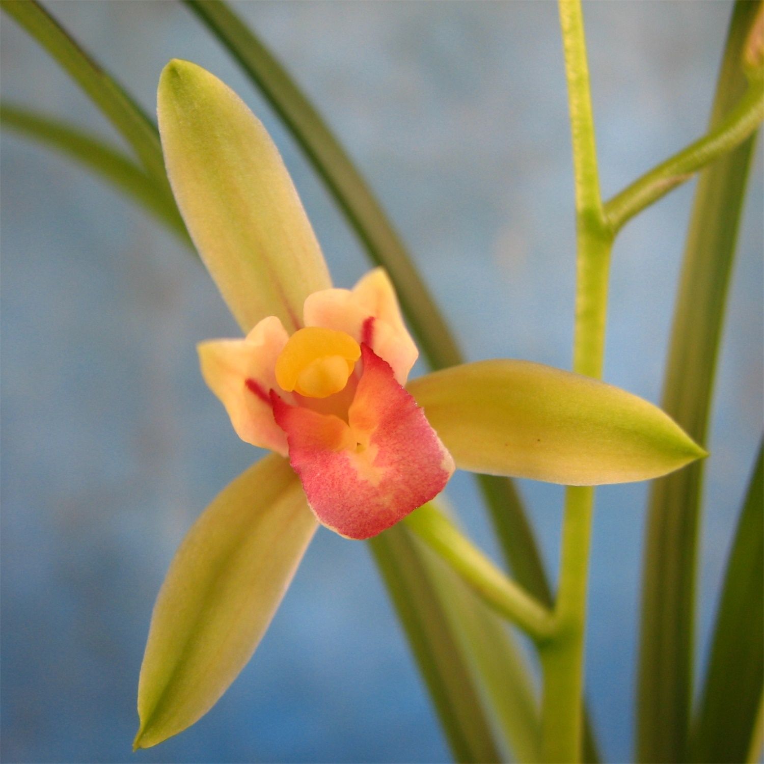 此花外三瓣绿黄色,整体色彩明艳,正常花。捧瓣向上立,淡红色的复色,透亮。如意侵红舌,舌胎整体呈侵红色(兰友称红素),开品精神,神韵素雅,形态优美。在全国各地都适宜栽培。收藏、鉴赏及投资都是兰友较为理想的选择。至今总数200苗左右。